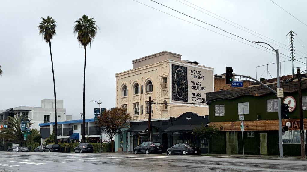 The building was long ago renamed “Hepburn Manor,” after actress Katharine Hepburn, who real estate people have claimed both built the building and lived in it. The building’s interior is decorated with images of the actress and stenciled quotes attributed to her. The building’s website says that it was “established in 1919,” when the then-eleven-year-old was living in Hartford, Connecticut. After she became an actress, she moved from Manhattan to a grand mansion in Beverly Hills and it’s hard to understand why she’d bother renting a modest apartment in Silver Lake. Then again, there also claims that Betty Grable lived there – in addition to in her mansions in Beverly Hills and Bel-Air.