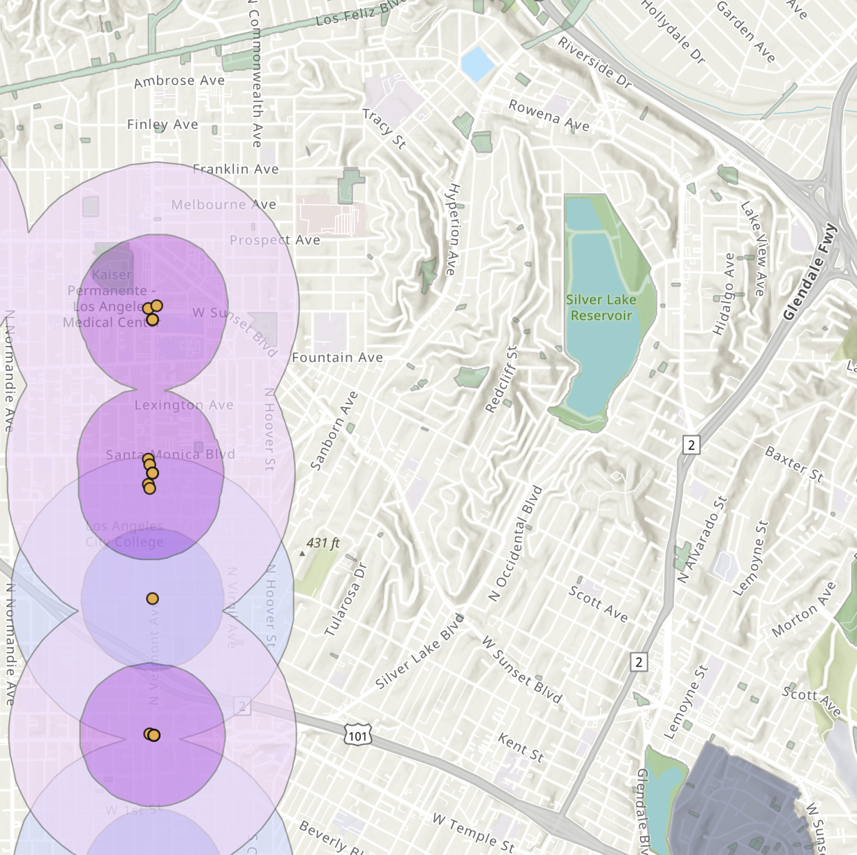 There are two categories of “major mass transit stops.” Tier 1 includes subways and commuter rail stations with frequent service – neither of which are found within Silver Lake. Tier 2 includes light rail and Bus Rapid Transit stations and stops for buses with dedicated lanes or headways of fifteen minutes or less – which are found on Vermont Avenue in nearby East Hollywood.