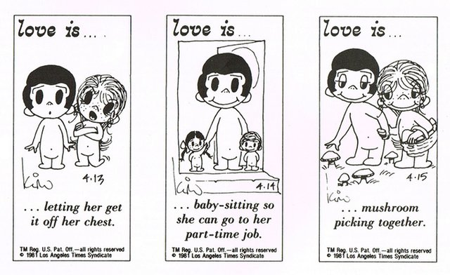 One of the first Kiwi artists to have an impact on the culture of Los Angeles was Kim Casali The artist was born Marilyn Judith Grove in Aukland on 9 September 1941. When she was nineteen, she left home to travel the world and ended up in Los Angeles in 1967. There, she met and began a relationship with a computer engineer named Roberto Alfredo Vincenzo Casali. Around that time, Kim began drawing kewpie-inspired cartoons to illustrate humorous incidents and on love letters to Roberto. Under the pen name “Kim,” the Los Angeles Times began publishing them as a series, Love Is… beginning on 5 January 1970. Although the strips were, at their peak of popularity, carried in some fifty newspapers, both Kim and Roberto were in the US illegally, and they returned to New Zealand where they were married in 1971. After Roberto died, the Casali family moved to Australia and Kim ultimately settled in the UK, where she died in 1997.